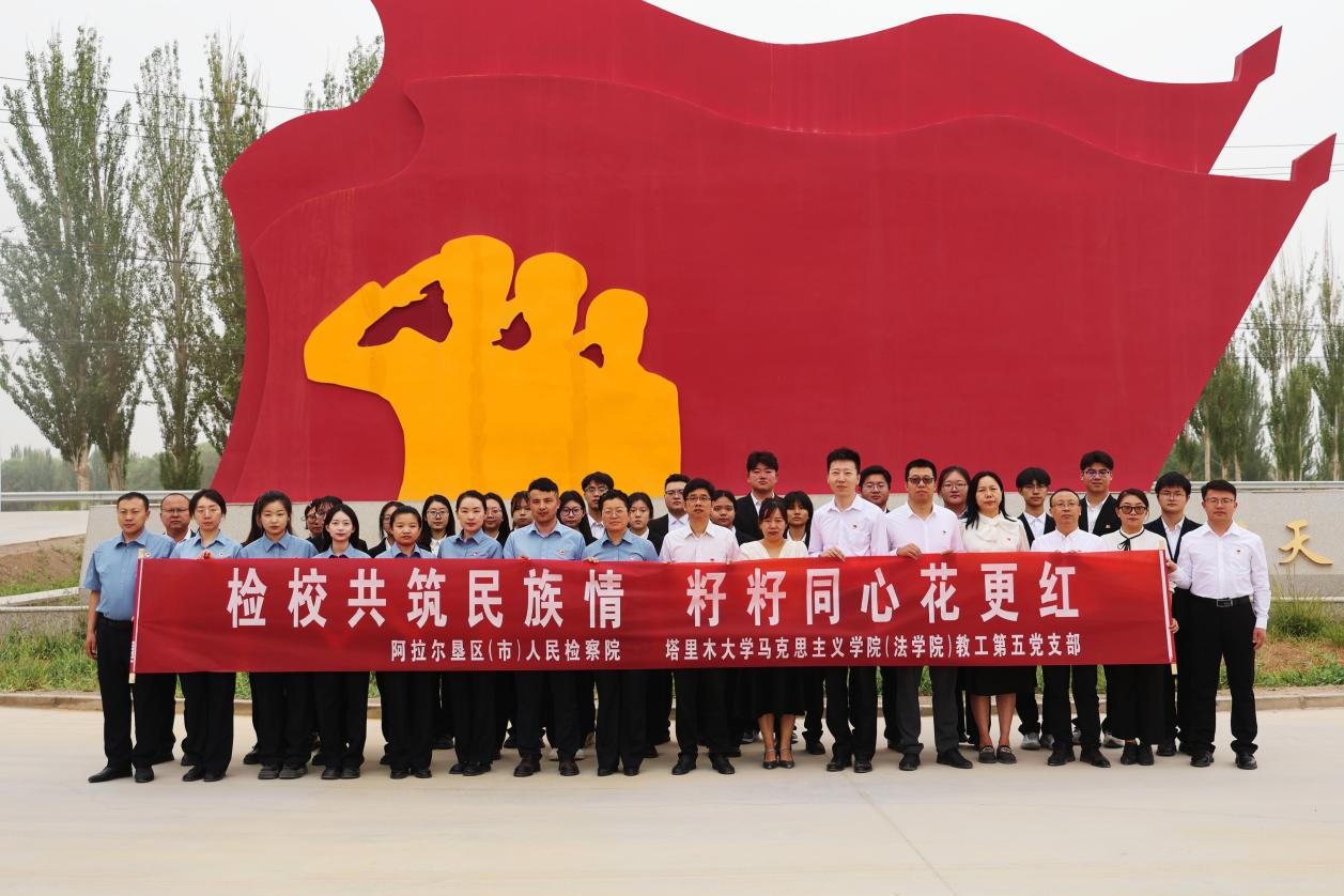 为贯彻新时代党的治疆方略,践行民族工作重要思想,推进民族团结进步创建,落实自治区第43个民族团结教育月工作,5月10日上午,51动漫 教工第五党支部、本科学生党支部与阿拉尔垦区人民检察院党支部开展“检校共筑民族情,籽籽同心花更红”--“党旗映天山”主题党日活动。全体党员参观阿拉尔市烈士纪念广场、九团红八连、托喀依乡主题教育馆并开展研讨,凝聚共识,共绘党建新篇。