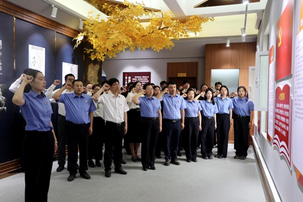 活动最后,全体党员与入党积极分子参观托喀依乡铸牢中华民族共同体意识主题教育馆。参观后,在阿拉尔垦区人民检察院党支部杨凯兴同志带领下,全体党员面对党旗重温入党誓词,进一步增强党性修养,坚定理想信念,明确责任担当。