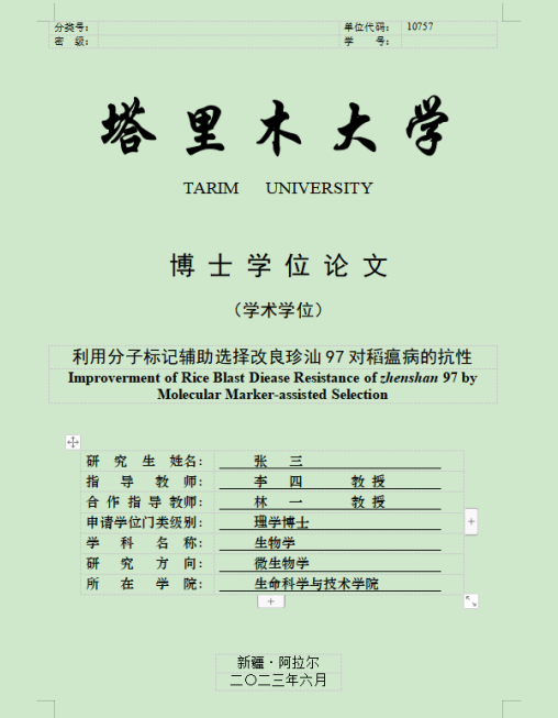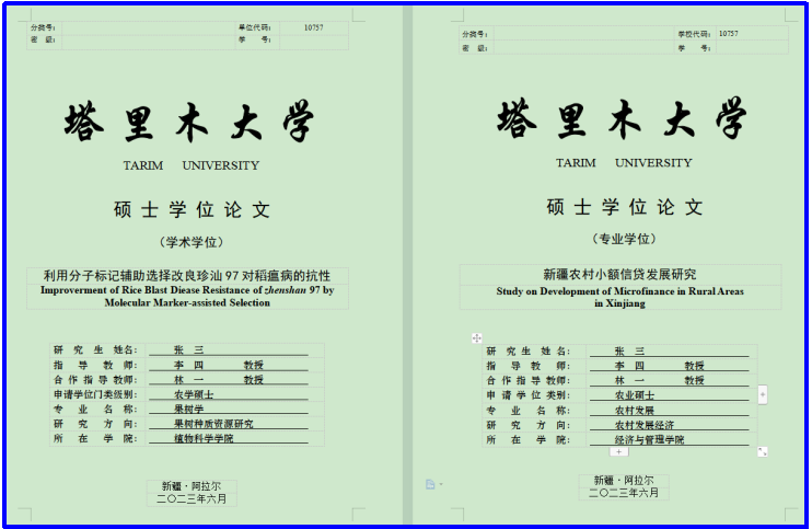 (1)专业学位论文封面与学术学位封面有部分地方不同,请选择使用。“专业学位类别”指农业硕士、兽医硕士、新闻与传播硕士、教育硕士、土木水利硕士这五类,请根据自己的情况填写。