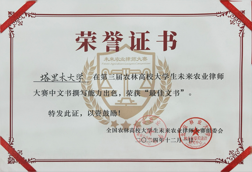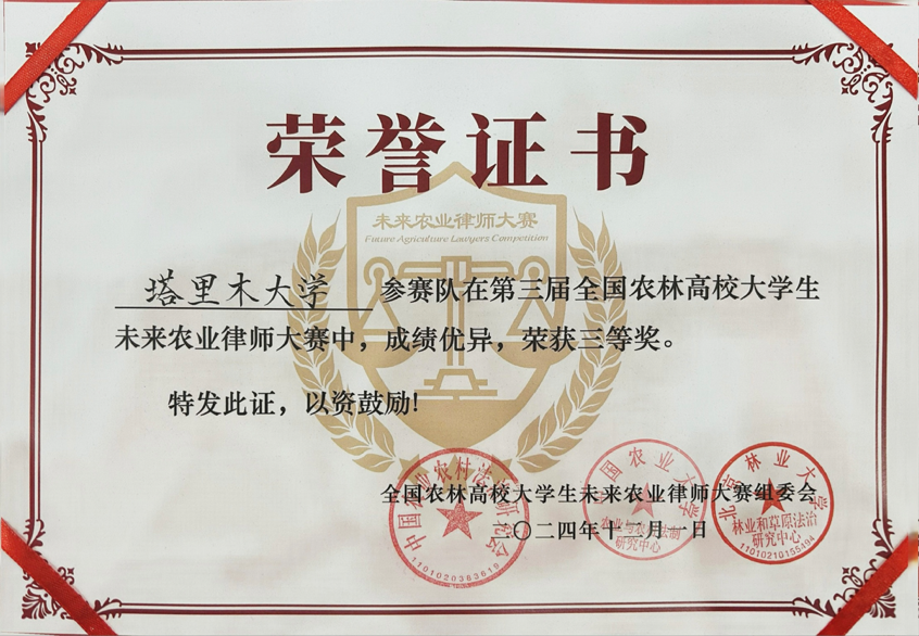 12月2日,备受瞩目的第三届全国农林高校大学生未来农业律师大赛在北京林业大学圆满落幕。我院学子凭借扎实的专业知识、出色的团队协作和精彩的现场表现,荣获全国三等奖和最佳文书奖。