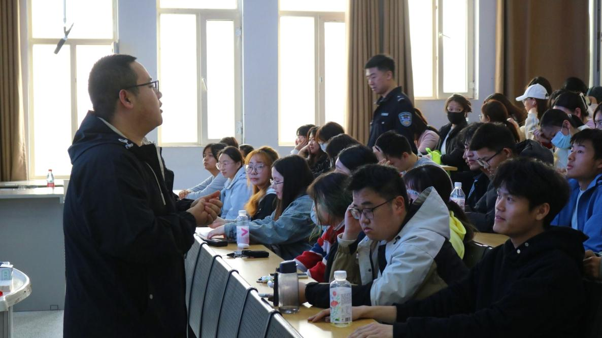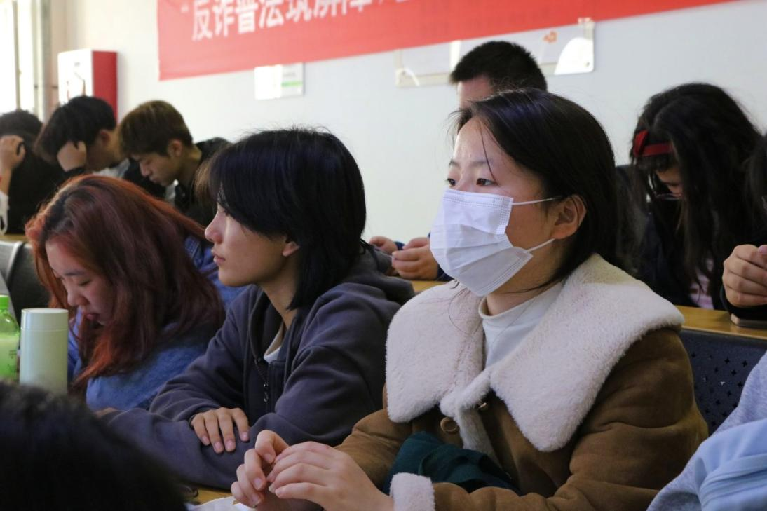 反诈中心警官以本辖区真实诈骗案例为切入点,结合近期诈骗案件统计数据,详细剖析“游戏诈骗”“虚假APP”等新兴诈骗方式、作案手法以及诈骗分子的心理话术。为了让学生们更直观地掌握反诈技巧,警官现场示范辨别潜在欺诈信息的方法,切实增强学生们的反诈技能。