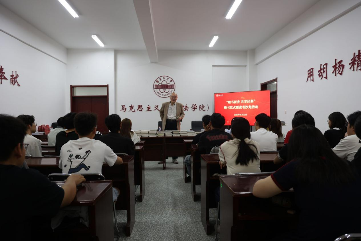 秦泽洪院长在活动最后表示,书籍是思想的载体,希望同学们通过赠书仪式了解其中的深情厚谊,希望广大同学置身书海,阅读经典,厚植理论根基。