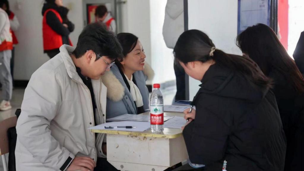 党委副书记杨震、团委书记芮雪与用人单位就人才培养、校企合作等展开交流。毕业班级班主任及就业帮扶老师到现场进行就业推荐。