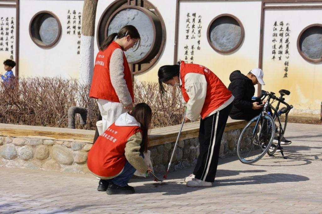 下午16时,志愿者们携带清洁工具,从学校东门步行至塔里木河畔,迅速投入到河岸环境清理工作中。他们分工协作,逐一排查河岸角落,利用夹钳、垃圾袋等工具拾捡碎石缝隙、落叶堆下的塑料瓶、烟头等废弃物,并对花园小径进行彻底清扫,为市民营造整洁的游览环境,使河岸面貌焕然一新。