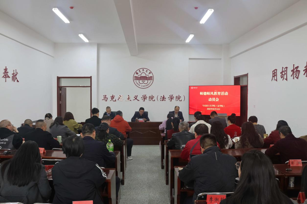 动员会上,院党委书记王志刚作动员讲话。他强调,推进师德师风建设,一是要提高政治站位、坚定政治方向。全院教职工要坚持“四个相统一”,在课堂教学、科学研究、言论发表中严守政治纪律和政治规矩。二是要聚焦关键环节,筑牢思想政治根基。抓学习教育、抓问题整改,开展师德大讲堂、榜样教师先进事迹报告会、师德发声亮剑、师德师风大讨论等系列活动。三是要抓长效机制,压实“三级责任”。党委抓统筹、支部抓落实、教师守底线,形成书记院长带头、班子成员包揽、全体教师参与的工作机制。他号召全院教职工要以功成不必在我、功成必定有我的担当,谱写学院师德师风建设新篇章,为推进兵团特点南疆特色一流大学建设作出马院贡献、展现马院风范。
