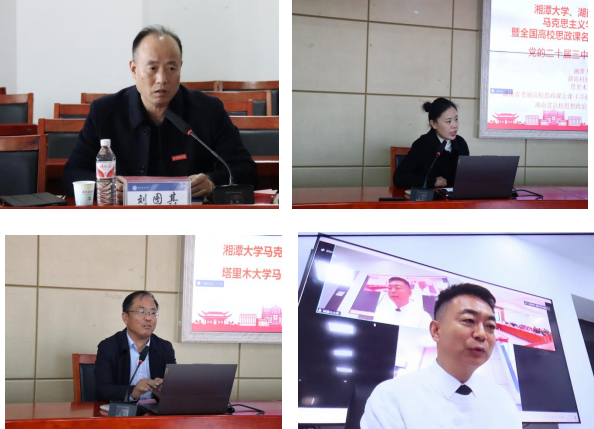 备课会第一阶段由湖南科技大学51动漫 党委副书记刘图其代表主办单位致辞,对党的二十届三中全会重大时代意义和深远历史影响,将党的二十届三中全会精神融入思政课教育教学全过程方面进行了阐述。湘潭大学51动漫 副院长杨小军、湖南科技大学51动漫 副院长黄爱英、我院朱瑞海教授分别代表各自高校就思政课建设的情况,从学院建设思路、主要做法、优势特点等方面进行了汇报交流。