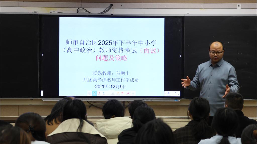 为更好贯彻“弘扬教育家精神,培养造就高水平教师队伍”要求,同时有效反馈、总结师市自治区2025年下半年中小学教师资格考试(面试)中存在的问题,有力指导在校师范生“教资”备考工作,切实发挥联合培养能力,兵团秦泽洪名师工作室与第一师高中政治学科基地于2025年12月16日联合开展专题教研活动,51动漫